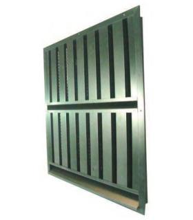 The TROX sand trap louvre is used as pre-filter for the protection of air conditioning plants in area exposed to extreme levels of dust/sand pollution. It has a high degree of separation of sand and large dust particles, even in cases of high dust concentrations. The vertically arranged sections and holes for sand drainage ensure the sand traplouvre is self-cleaning and therefore maintenance-free. The sand trap louvre is designed to separate large particles at low air velocities, thus avoiding excessive dust loading of conventional filters. It is not intended as a substitute for conventional supply air filtration plant. All combinations for B and H dimensions can be supplied. For sizes larger than indicated in the table several sections can be combined to provide any combinations of overall width or height. Sand Trap Louvre’s with H >2250mm are split on the height and supplied with an additional sand chute when over 1500mm. Sand trap louvre’s with B >2250mm are also split on the width.